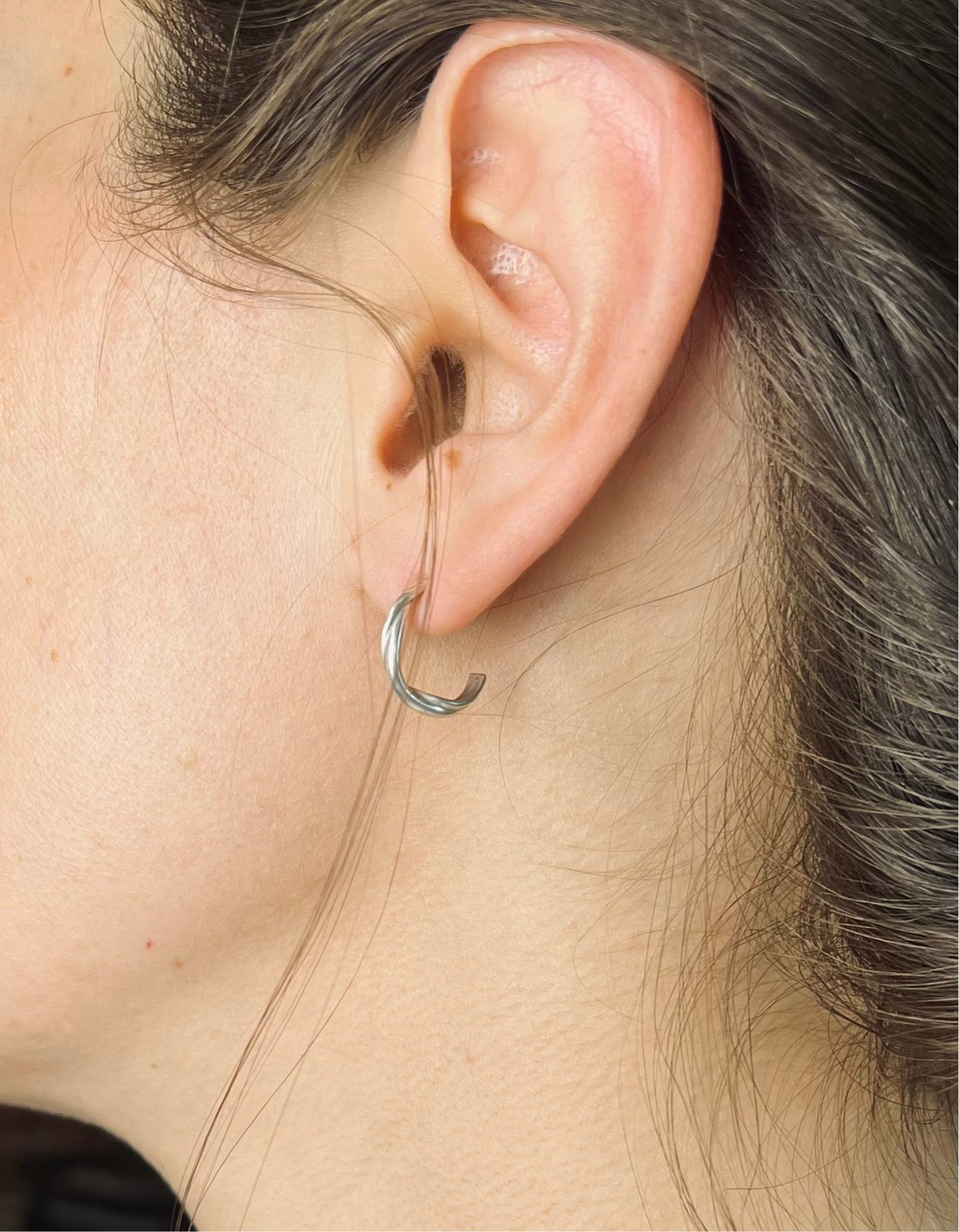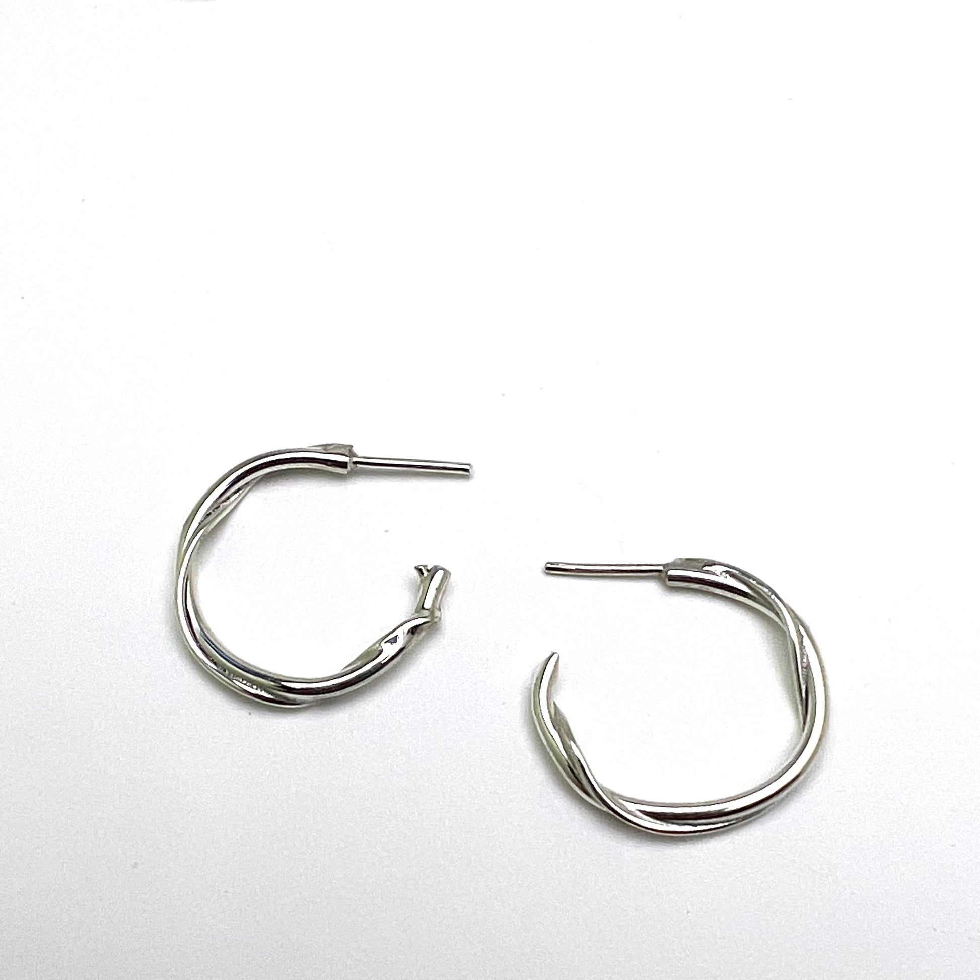 These silver twisted hoops are inspired by vines.  They are individually made by melting silver wire together to create truly unique twisted pattern to make a classic hoop special.  These are a post style hoop I use a rubber backing to keep them secure.